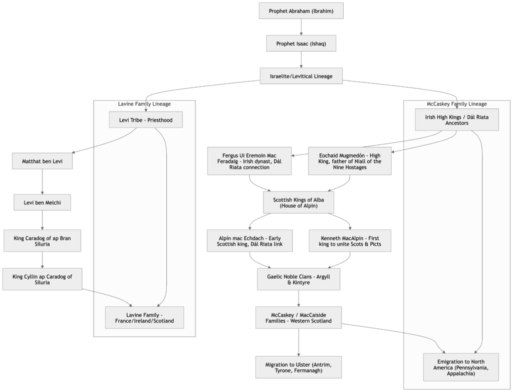 Both Lavine and McCaskey lineages connect to a wider ancestral framework rooted in the Israelites.